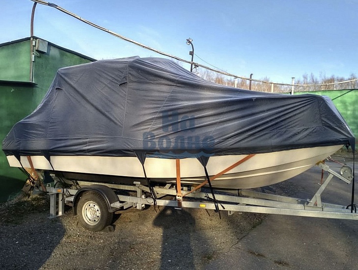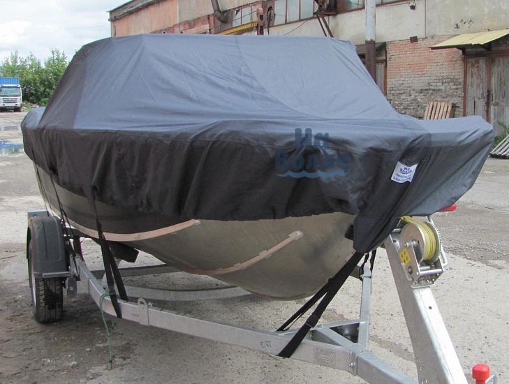 Чехол надежно крепится к лодке с помощью системы из нескольких ремней, которые крепятся к прицепу и ремнем проходящим по периметру через люверсы. Таким способом можно максимально плотно прижать края чехла к корпусу лодки и предотвратить сползание чехла под воздействием встречных потоков воздуха. Также, при определенном способе крепления самой лодки к прицепу для транспортировки, чехол будет дополнительно прижат этими креплениями.